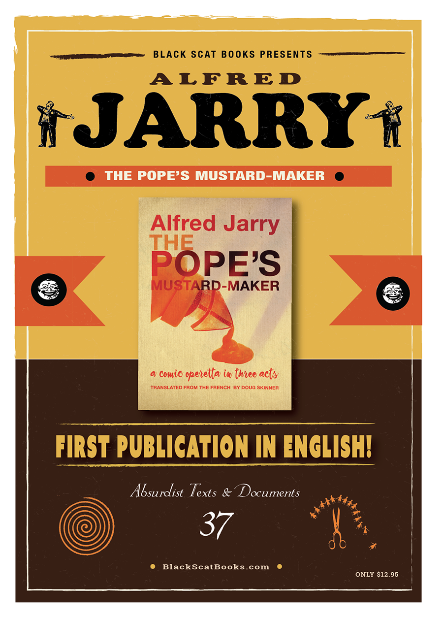 Readers who know Jarry only from Ubu or his novels may be surprised that he wrote operettas, but his are fully Jarryesque, with his usual gusto for smutty jokes, legend, folklore, puns, wild invention, and popular theater. In his hands, Pope Joan becomes Jane, who runs off with her lover and disguises herself as pope. How will she pass inspection on the slotted chair? What will she do when her husband shows up? And has there ever been another production number celebrating the spiritual virtues of enemas?