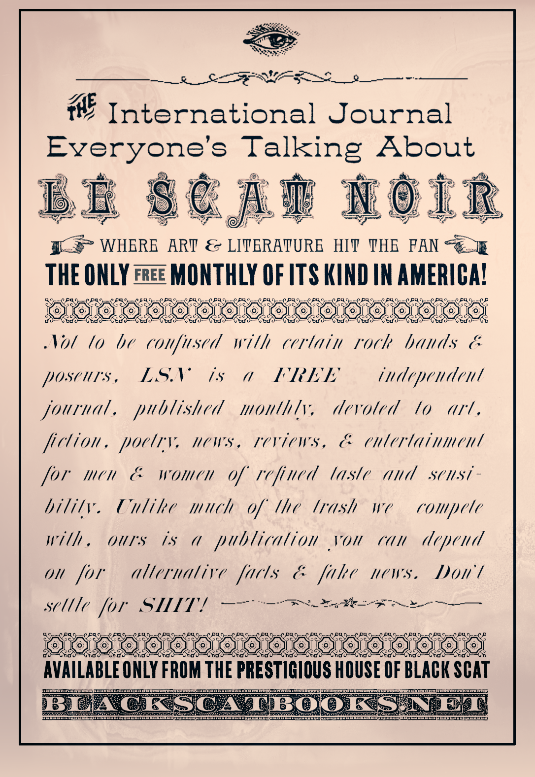 BLACK SCAT BROADSIDES are full color, printed on prime 80# UV-coated,