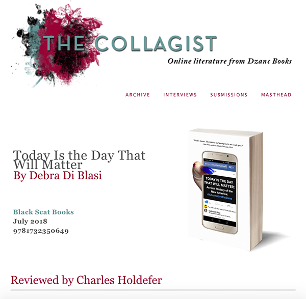 Charles Holdefer‘s perceptive review of Debra Di Blasi‘s collection TODAY IS THE DAY THAT WILL MATTER appears in The Collagist.