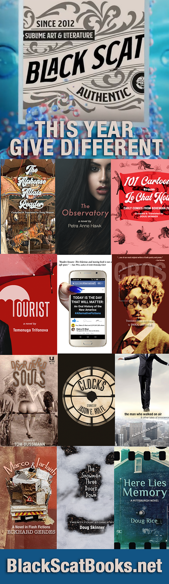Drawn from Black Scat’s eight editions of the master French absurdist, this compendium is a sublime introduction to the wordplay and black humor that shocked and dazzled Bohemian Paris in the raucous “Banquet Years.” The READER includes the celebrated pataphysical text “A Thoroughly Parisian Drama”—a favorite of both André Breton and the Oulipians—as well as stories, plays, an excerpt from his only novel, and the classic exploits of Captain Cap and Francisque Sarcey. The translator, Doug Skinner, has added copious notes and an illuminating introduction.