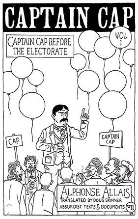 The free Captain Cap campaign buttons have all been claimed, but we still encourage our visitors to purchase a copy of the book—a treat in itself. Besides, volume II in our three-volume series by Alphonse Allais (translated by Doug Skinner) will be coming around the mountain soon, so you’ll want to collect the set.